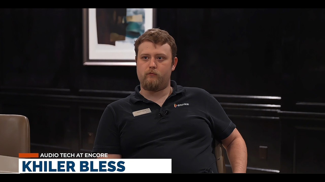 Today, he works as an Event Technician with Encore in Kansas City, setting up audio, visual, and lighting for live events. He fine-tunes microphones, calibrates sound, and ensures every detail is perfect.
